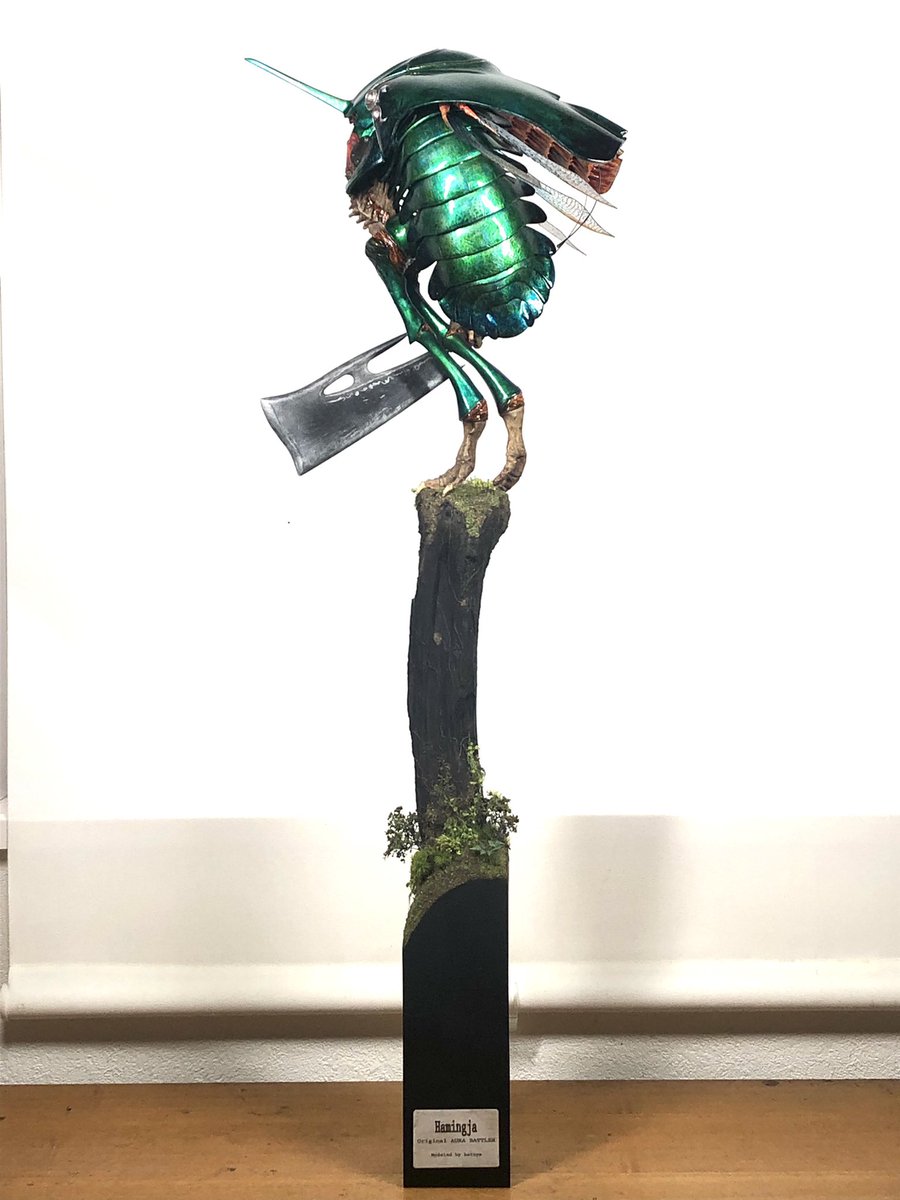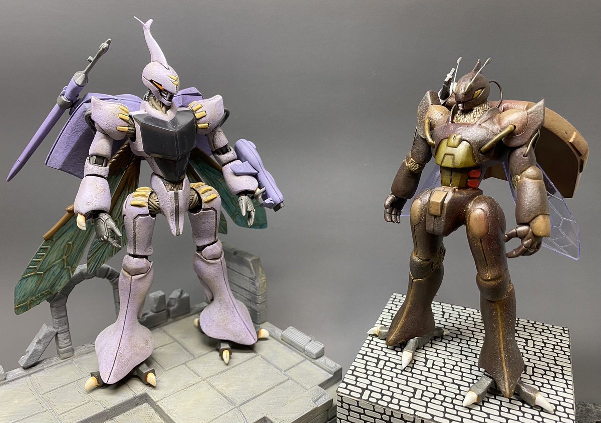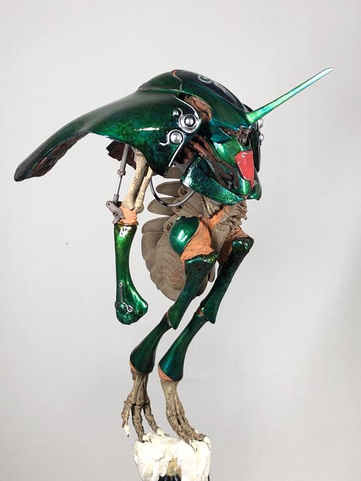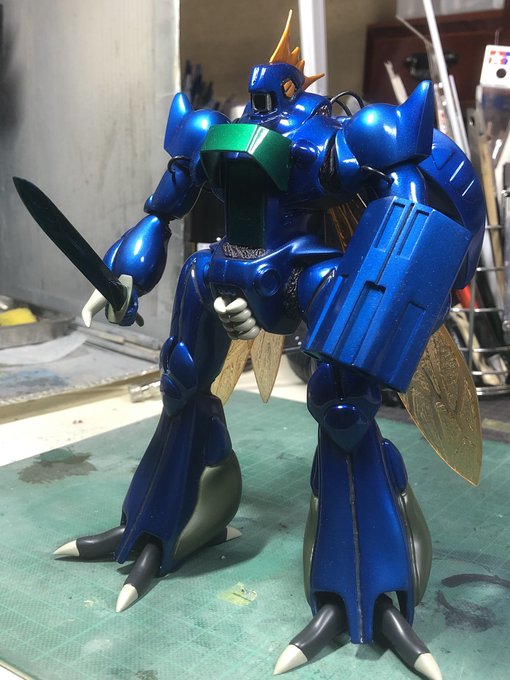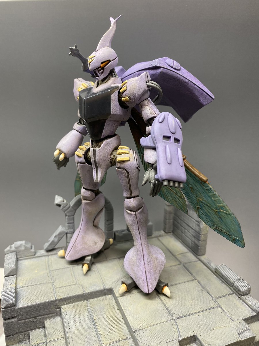 #今月作ったプラモ晒そうぜ #座間祥 #AB的なモノをABを使わずに作る 完成♪ 翅は、いつもお世話になっている平米屋さんのデカールを使わせてもらっています♫ 今回は、玉虫色をイメージして、シルバーの上にエナメルクリアーを筆で重ねてみましたが、中々イメージ通りとはいきませんでした(≧∇≦)