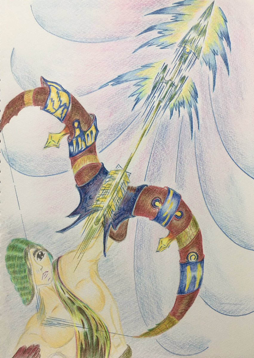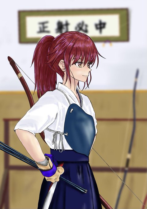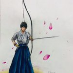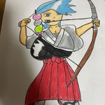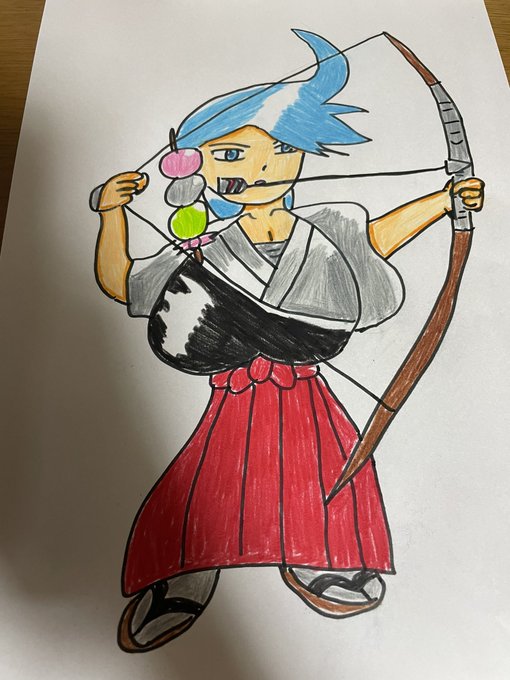 #一日一絵 #毎日絵一枚上げる #イラスト #色鉛筆画 #オリキャラ #イラスト好きな人と繋がりたい #絵描きさんと繋がりたい #弓道の日 蒼丸(弓道Ver) 蒼丸は少女時代の頃から弓道の修行をやっており猫神社の巫女のなかで弓道は一番上手であり昔は水の都の弓道場で修行していた