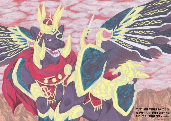 #ZX10周年 好きなキャラクターはズィーガー! 5弾フリーペーパーで遊び始め、アニメ化3種スターターで初めて製品を購入する際。デザインに惚れました♡ 7月末締切の1番好きなカードを選べという超難題キャンペーンに、2ヶ月越しの回答。 #フォロワー500名以下の二次創作絵 #弱々絵師お絵描きタグ予告