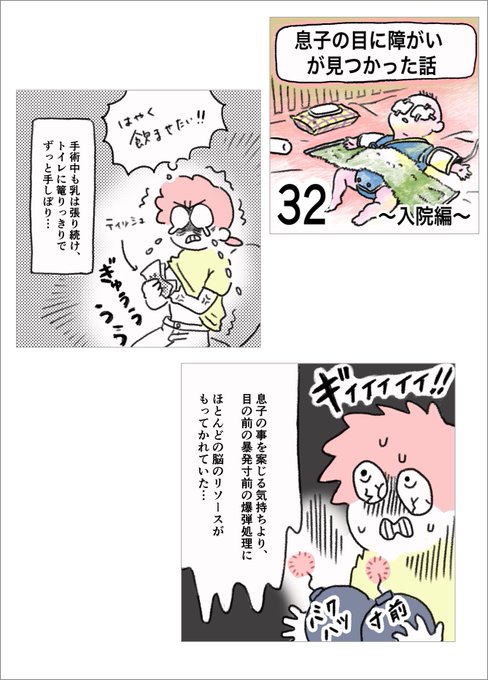 看護師さんが足りてない問題。昔は親の付き添いが義務化されていたそうなんだけど、親の負担を減らす為に原則不要に。だけど、付き添い親なしで成り立つようには見えなかった。 息子の目に障がいが…35 (1/3) #先天性白内障 #弱視 #漫画が読めるハッシュタグ