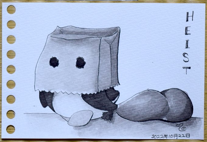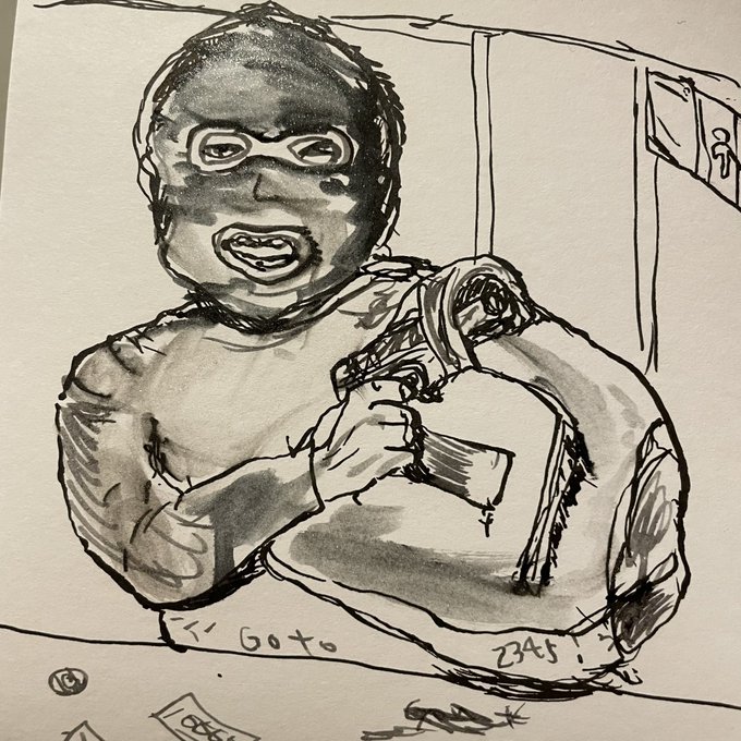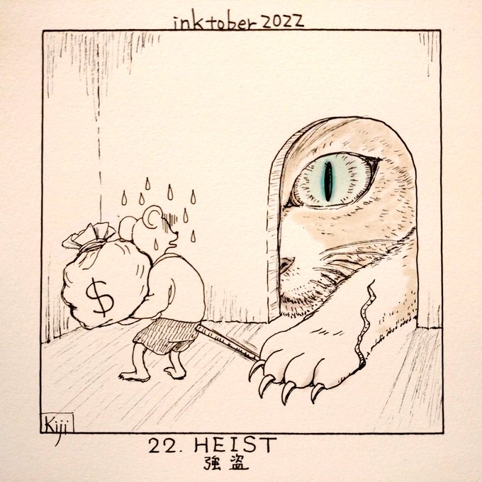 インクトーバー DAY22「強盗」 画材:マルマン画用紙、プラチナ万年筆 カーボンインク、パイロット製図用インク、丸ペン、筆 あのバッグに何が入ってる? #インクトーバー #インクトーバー2022 #inktober2022 #Inktober #heist #強盗