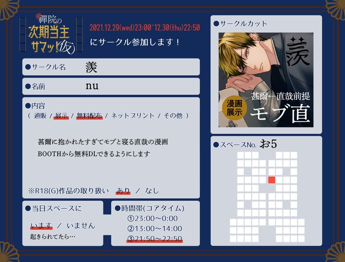 今月29,30開催の直哉webオンリーのおしながきです! 新刊と既刊はpixivで公開してますので読みたい方はこちらからどうぞ→pixiv.net/users/30183968 #当主カッコカリ