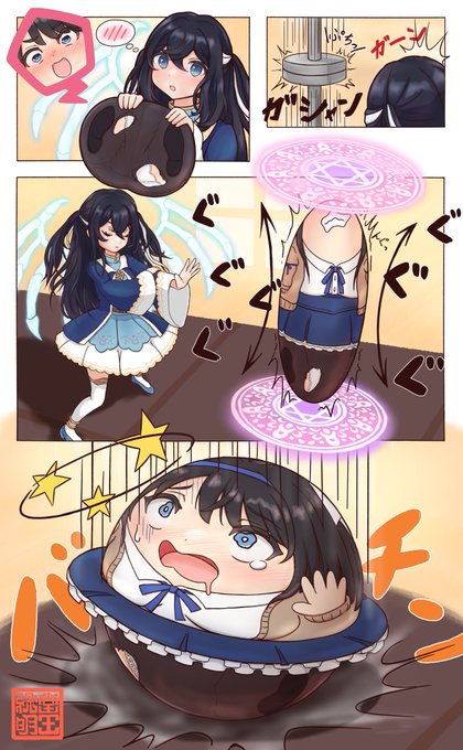 すけぶ記念すべき10件目を奉納致しました!平面化した後に上下から引っ張られて土星のような形に球体化する漫画です。2枚目はどうしても土星化からの例のグミ化が描きたくて描いてしまったオマケ漫画です。召し上がれ! skeb.jp/@edou_henka/wo… #状態変化 #形状変化