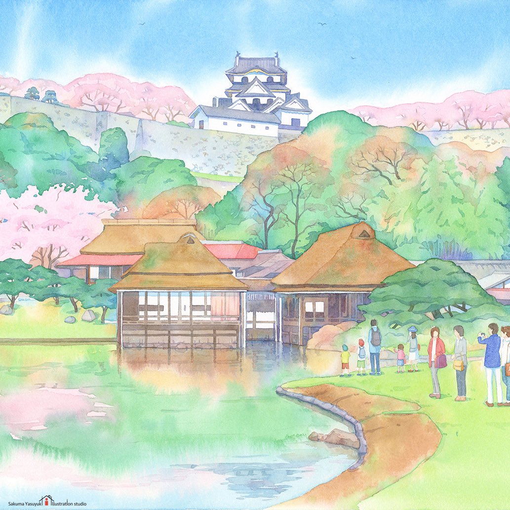 滋賀県彦根城の桜。 当時、小学生だった長男を社会勉強も兼ねて一緒に現地へ足を運びスケッチ&撮影して描いた。そんな長男も昨日入学式にて晴れて高校生。 仙台の桜も今日の風で葉桜になりつつあります。 #水彩画 #彦根城 #桜 #watercolour #watercolourpainting