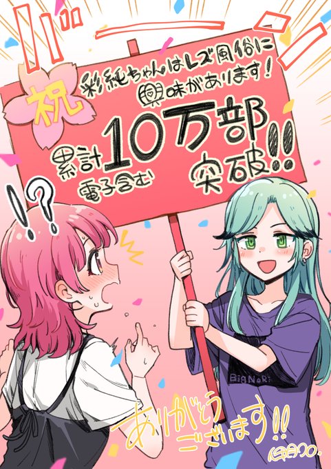 ㊗️1巻重版4刷目! そしてなんと「#彩純ちゃんはレズ風俗に興味があります!」が累計10万部(電子含む)突破しました‼️‼️‼️ 応援してくださった皆様本当にありがとうございます!🙇♂️ 1巻帯にも入れてもらってますやった~~~ 9月15日発売の3巻も合わせてよろしくお願いします…!