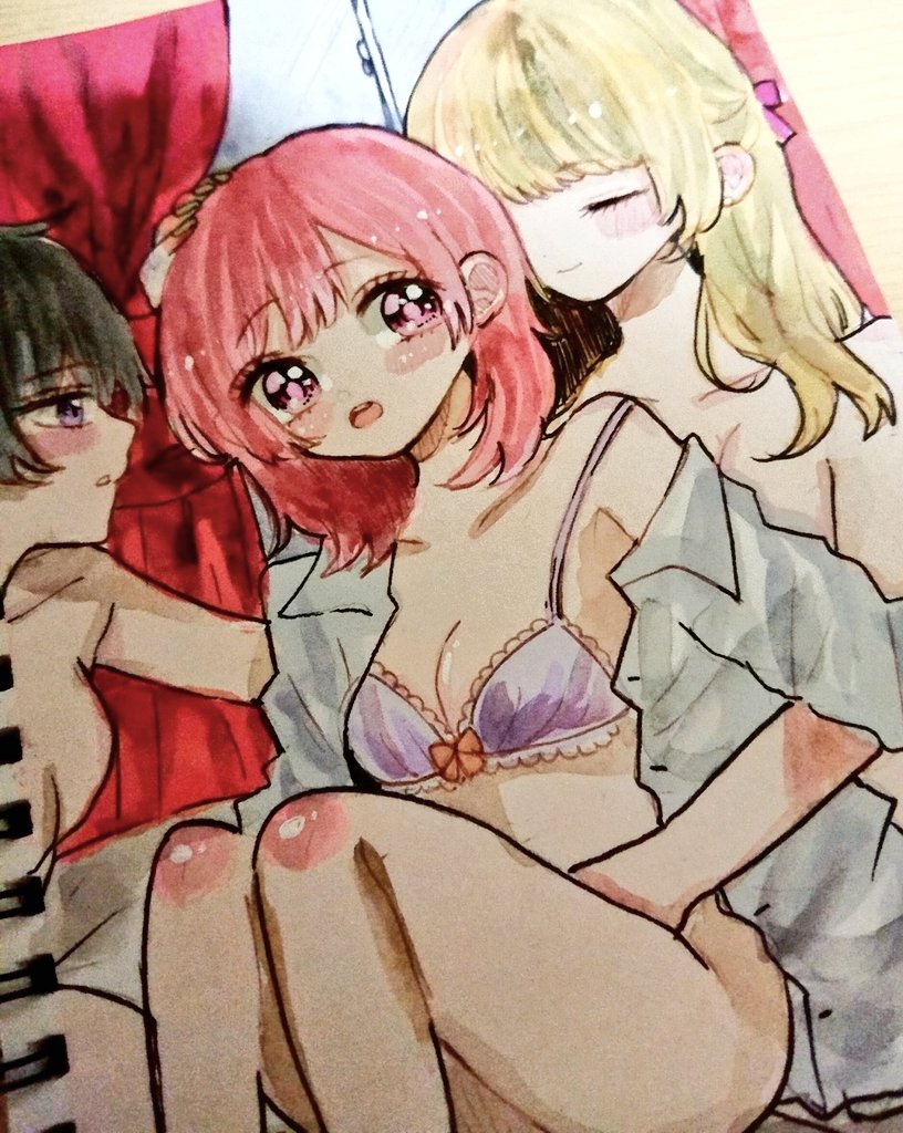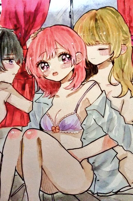 伊月クロさんのファンアート描かせていただきましたー❤️( ≧∀≦) ほんとにクロさんの作品大好きです(*^^*)これからも楽しみにしてます‼️ @kur0r0 #彩純ちゃんはレズ風俗に興味があります #伊月クロ