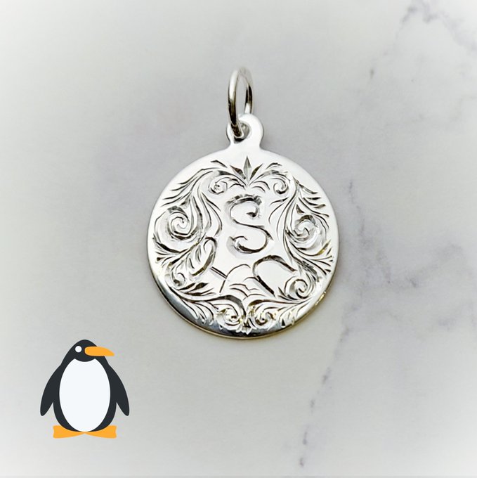 Draw "SHU" with Arabesque on silver pendant by handcrafted engraving #shuYamino #YaminoArt #tyoukin_acg #彫金