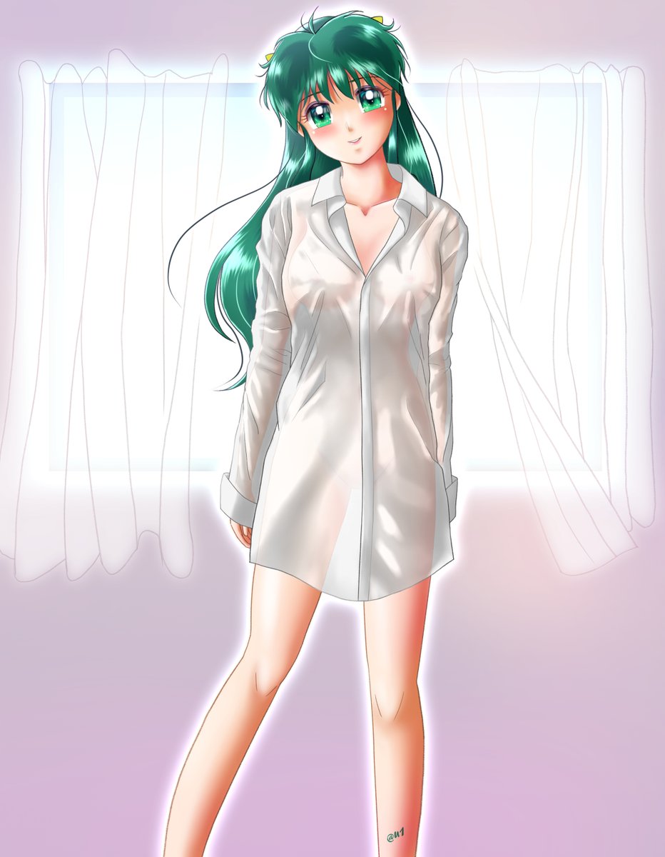 彼シャツラムちゃん 先日のワンドロ絵を素体に使ってシャツ描きの練習をしました😆初めて透け感の絵を描きましたがなかなか思うようにはいきませんでした😅また描きたいです。 #彼シャツ #うる星やつら #うる星やつら2022 #ラムちゃん twitter.com/u1_kon/status/…