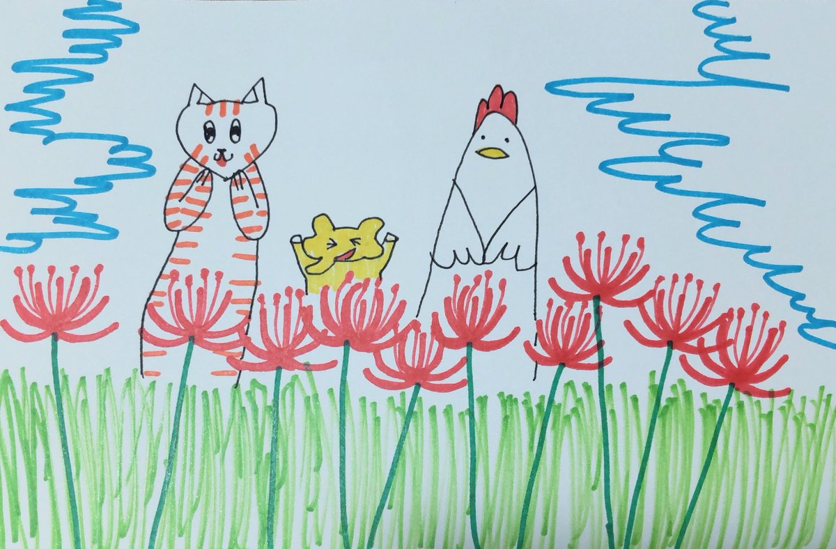 おはようございます!! 今日もお仕事の方もお休みの方も、 無理なく行きましょう!! 素敵な月曜日を〜😆 (#彼岸) ことら、彼岸花って不思議な形!! #イラスト好きさんと繋がりたい #絵描きさんと繋がりたい #イラスト