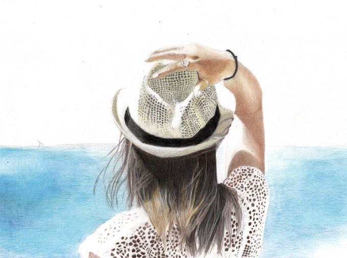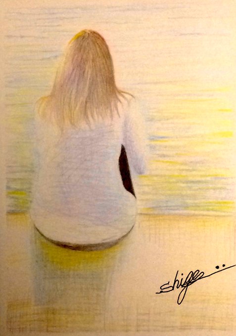 〜もう少しこのまま黄昏ていたい私〜 今朝は色鉛筆を使って、堤防に座る女性を描いてみました。もう少しこのまま黄昏ていたい私。 #色鉛筆画 #人物画 #女性 #後ろ姿 #絵を描いている人と繋がりたい #絵が好きな人と繋がりたい