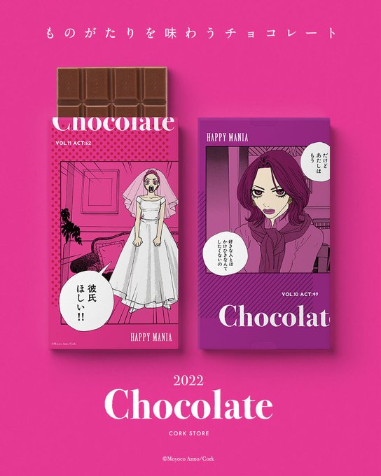 『 #ハッピー・マニア 』 & 『 #後ハッピーマニア 』 💞🍫チョコレート発売中🍫💞 ハピマニからは、カヨコが ウエディングドレスを 着ているにも関わらず、 「彼氏ほしい‼」 となるあのシーンが パッケージに💥😆 corkstore.jp/pages/chocolat…