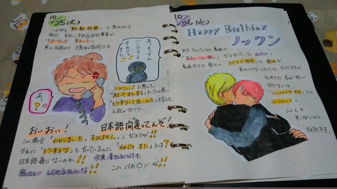 こんばんは。本日 #徒然補完計画 に投稿した #絵日記 です。 #10月26日はノックンのお誕生日でした #MeseMoa #あおいくん #イラスト #手描きイラスト #アニメクールドジ男子
