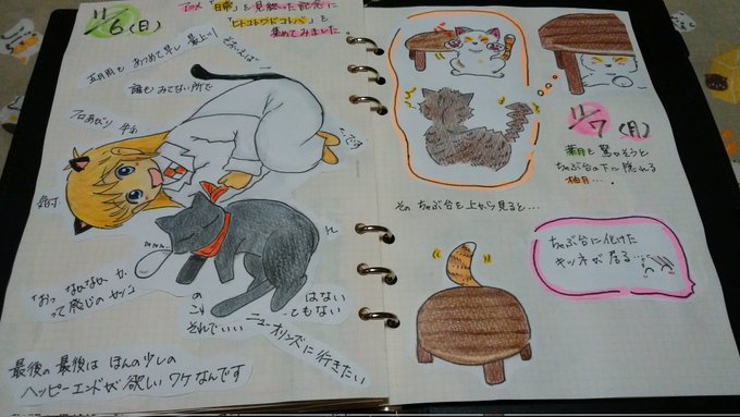こんばんは。本日 #徒然補完計画 に投稿した #絵日記 です。 #白服さんお誕生日おめでとうございます #MeseMoa #MeseMoaあおいくん #MeseMoa白服さん #イラスト #手描きイラスト #猫 #猫のいる暮らし