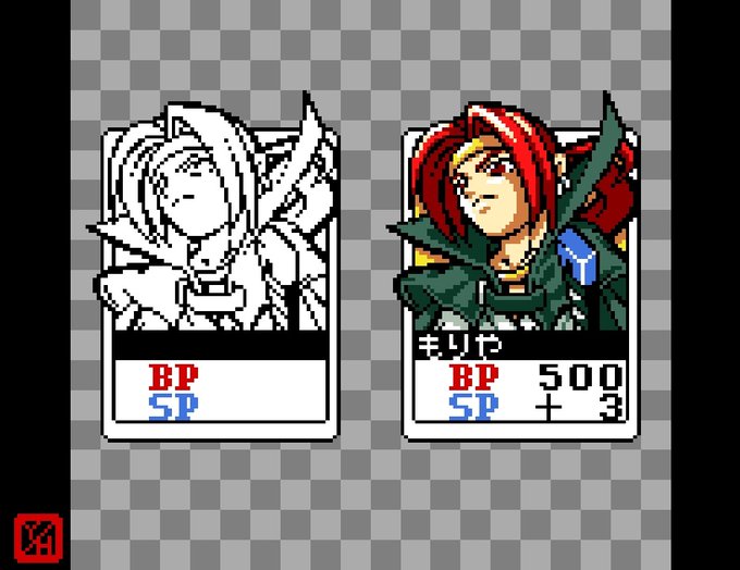 NPC『激突カードファイターズ』より、御名方守矢のカードを模写してみたゾ。 #カードファイターズ #月華の剣士 #御名方守矢 #SNK #ネオジオポケットカラー #ドットアーティスト #ドット絵 #レトロゲーム