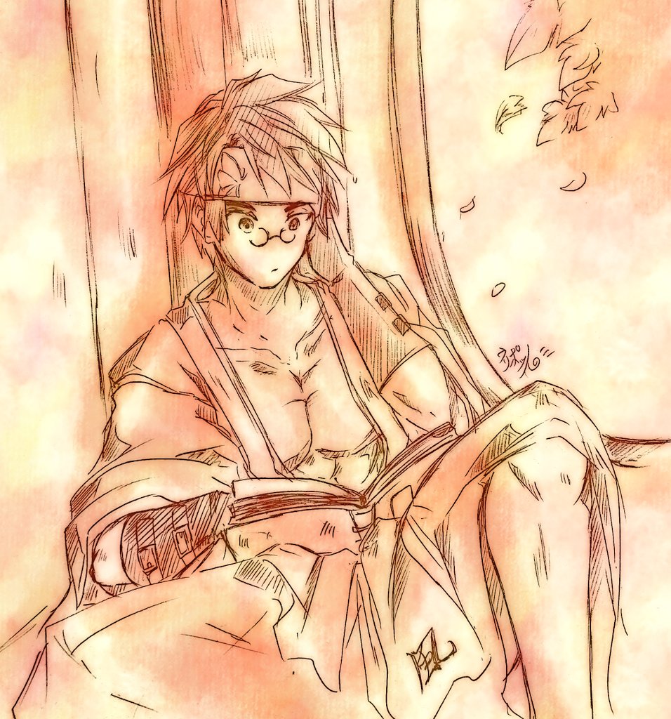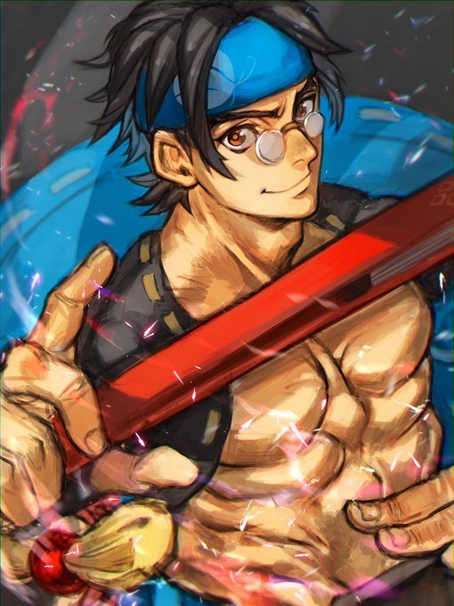 #深夜のGGワンドロお絵描き会 遅刻スタートで約1h 途中トラブル発生で正確ではないですが😅 お題『バケーション』 普段からバケーションな男なので、たまに時間がぽっかり空いたら、チップ達から誘われるとかない限り、こうなんじゃないかと😇 #格ゲーキャラ描こうぜ #御津闇慈 #AnjiMito #GGST