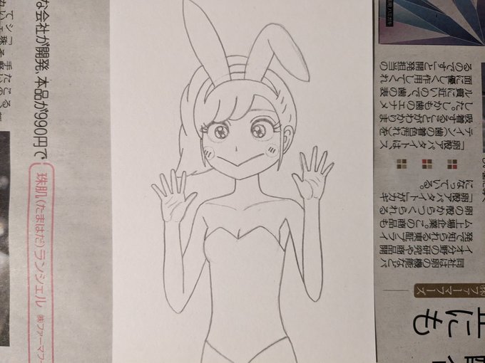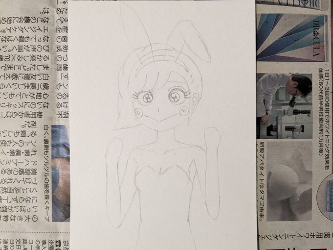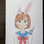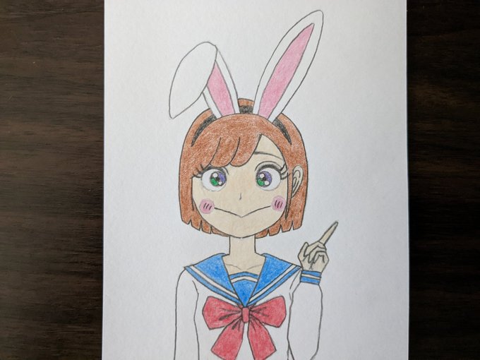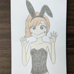 バニーガールのコスプレをするオリキャラの御目目丸美ちゃん♪ #御目目丸美 #オリキャラ #オリジナルキャラクター #手描きイラスト #イラスト #落書き #アナログイラスト #アナログ絵 #色鉛筆 #illustration #コスプレ #バニーガール #bunnygirl