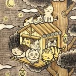 ペン画も追加してきました。 クラフトショップmata mataさんで展示.販売しています。ツリーハウスでぎゅうぎゅうしながら満喫してるねこさん達。 #ペン画 #yushima_neko #matamata_shop #御茶ノ水