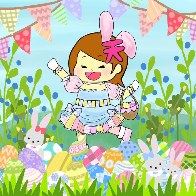春の復活祭!イースターエッグを探そう! 天テンちゃんはイースターバニーになったよ😆 色とりどりのエッグがかわいいね❤ #イースター #イースターエッグ #復活祭 #イラスト #イラスト好きな人と繋がりたい #絵描きさんと繋がりたい #ゆるいイラスト