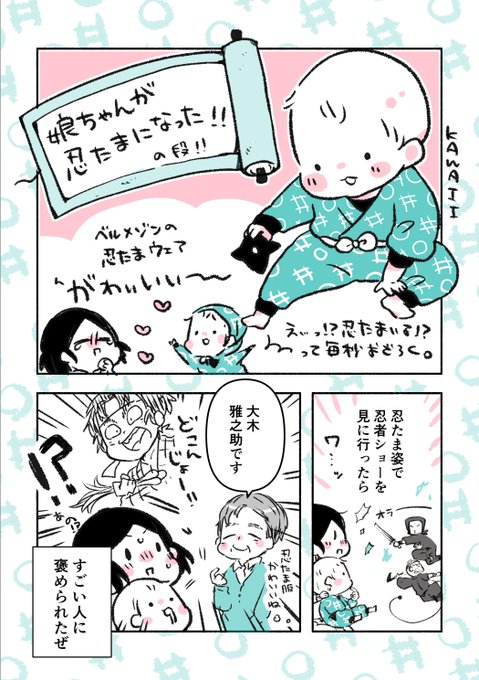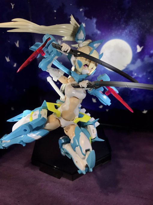 忍「忍者は影〜♪ひとの影〜♪ 🦊「古っ‼️ 鼻歌なんて、今日はとっても機嫌良さそうね 忍「にゃんにゃん💙 🦊「… 忍「(あれ?ここはニンニン🥷で行くべきだったか💦 🦊「コ…コンコン❤️ (=´∀`)人(´∀`=) にゃんともいい日だにゃー♬ #忍者の日なのでニンジャを貼る #メガミデバイス