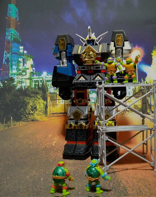 🐢【タートルズ - 無敵将軍とタートルズ - 】🌃 -SHOGUN MEGAZORD- #夜のフィギュア撮影会 2/20 お題 『無敵』 #忍者戦隊カクレンジャー #TURTLES #タートルズ #TMNT