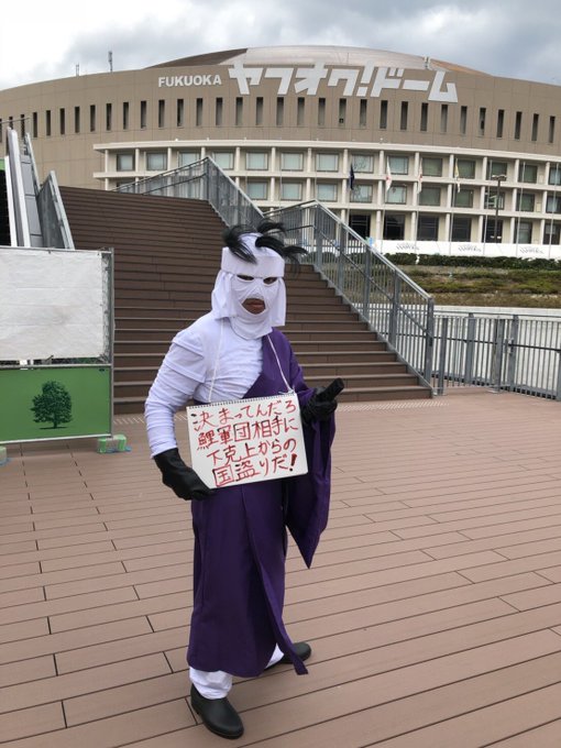 金曜ロードショー本日公開! 数年前の日本シリーズにて 志々雄真実のコスチュームで ドーム入りしたのを思い出しました。 当時は ハロウィーンで 盛り上がった記憶が蘇ります。٩(ˊᗜˋ*)و #sbhakws #金曜ロードショー #るろうに剣心京都大火編 #志々雄真実 #コスプレ twitter.com/kinro_ntv/st…