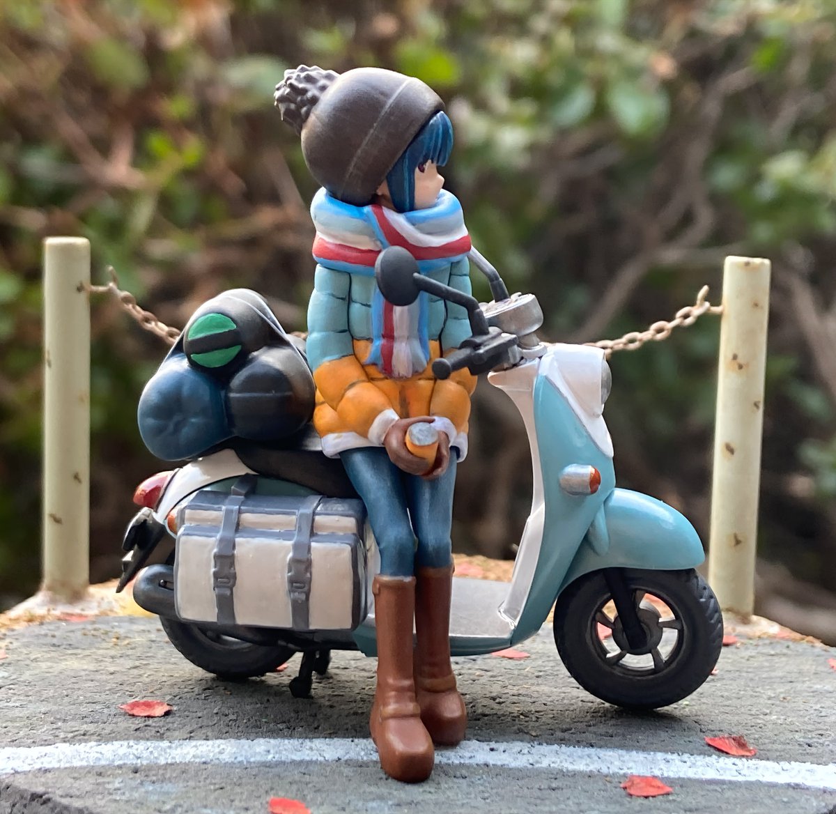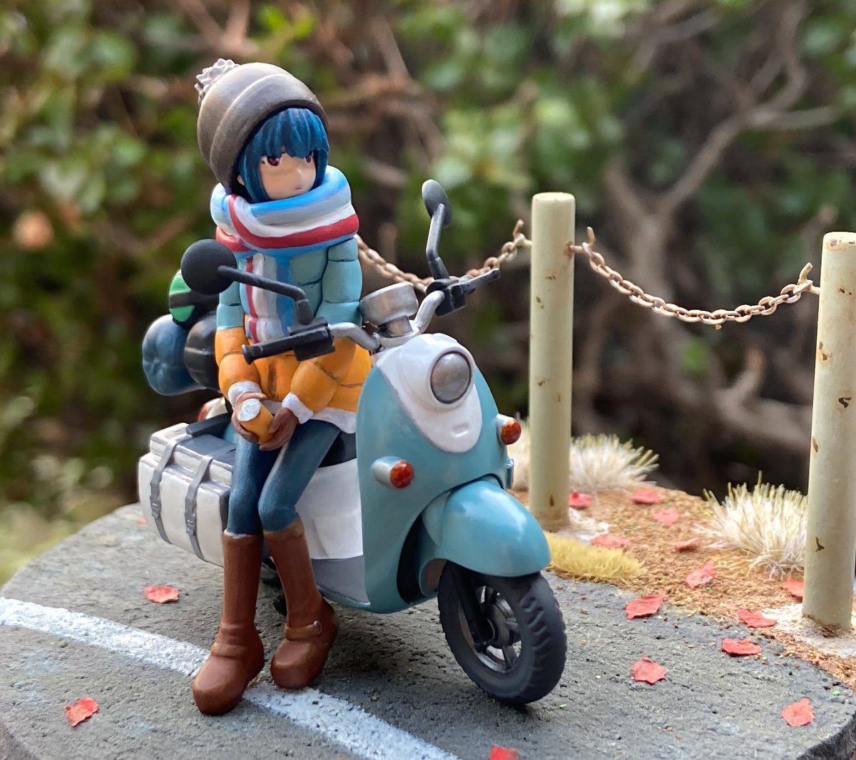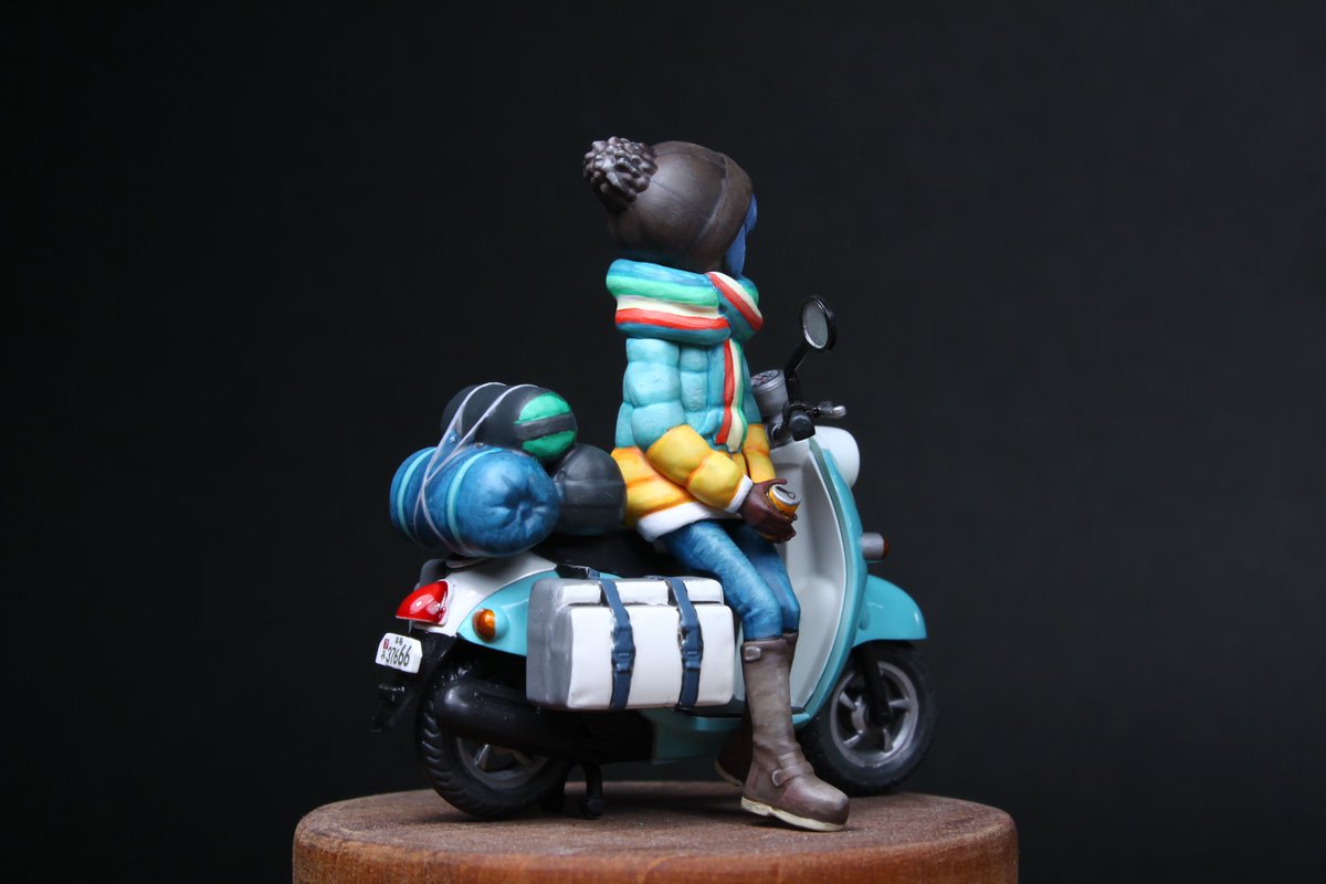 海洋堂1/24ARTPLA 志摩リンとバイクセット完成しました‼︎ 筆でじっくり塗装を楽しめました😗 目の手描きにも挑戦してみましたが難しいですね🫠 せっかくなんでコンテストにエントリーしてみます #志摩リンとバイクセットフォトコンテスト #ゆるキャンΔ