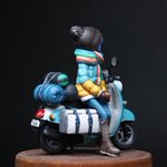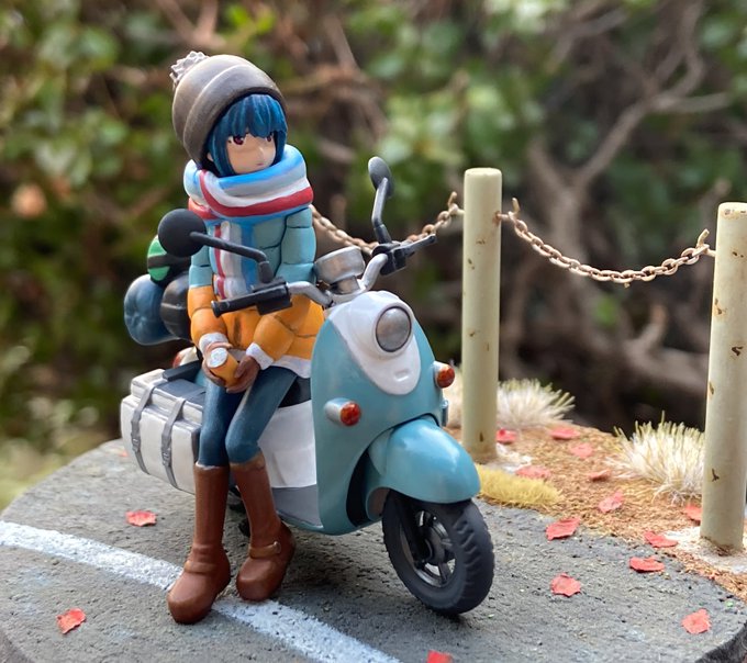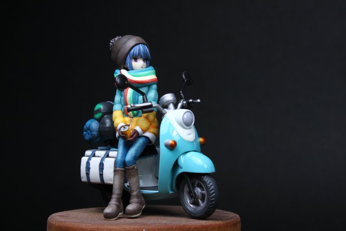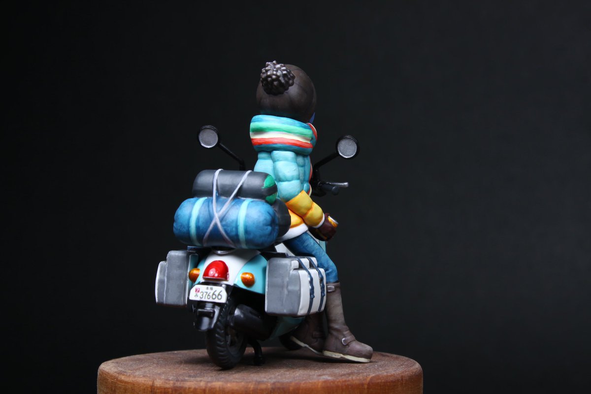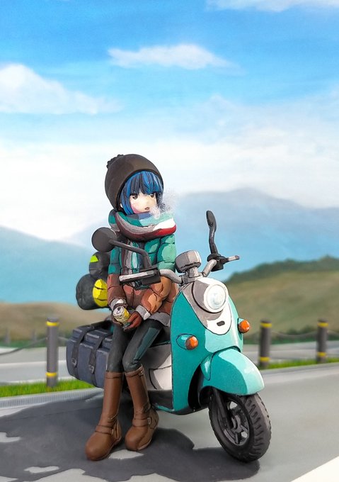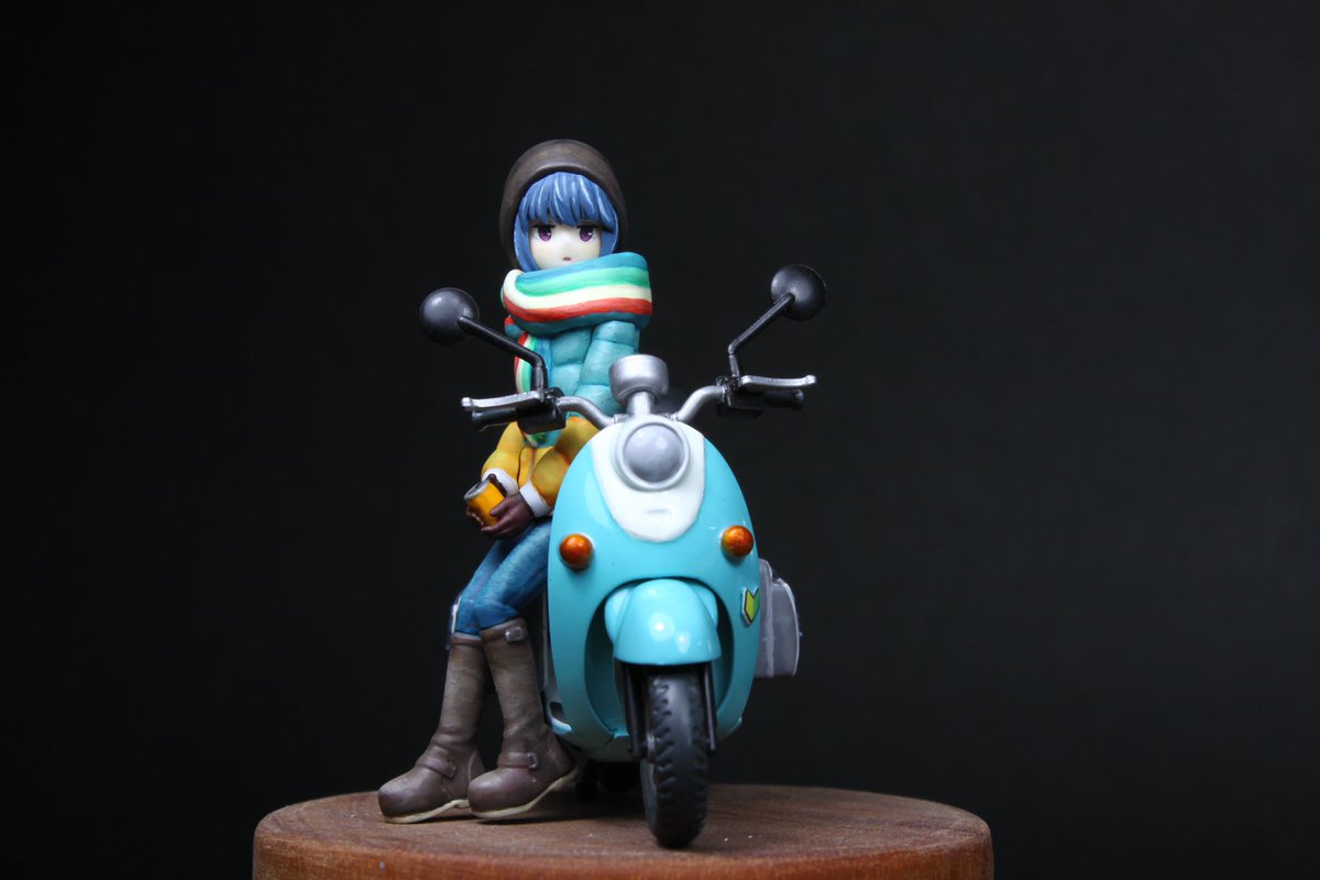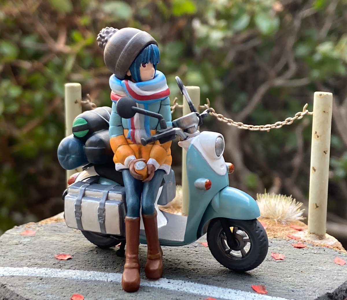 海洋堂1/24ARTPLA 志摩リンとバイクセット完成しました‼︎ 筆でじっくり塗装を楽しめました😗 目の手描きにも挑戦してみましたが難しいですね🫠 せっかくなんでコンテストにエントリーしてみます #志摩リンとバイクセットフォトコンテスト #ゆるキャンΔ