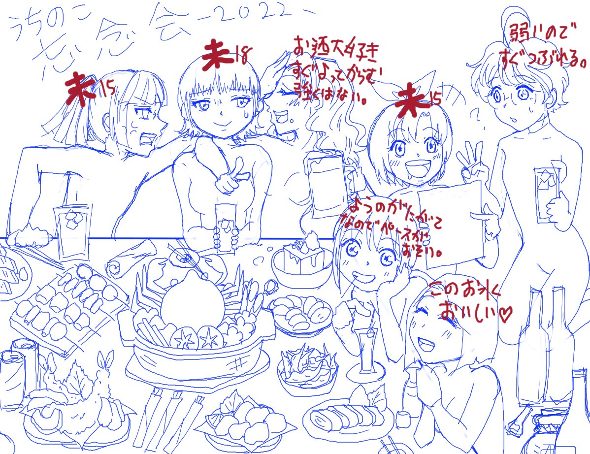 ✨間に合ったーーーー!!!! ギリギリっ💦 今年最後のイラストです。差分も一応上げときます。 うちの子忘年会イラスト🍶来年もみんな仲良し💚 そして来年もよろしくお願いしまーす(o*。_。)oペコッ #イラスト好きさんと繋がりたい #絵描きさんと繋がりたい #忘年会 #うちの子 #描き納め2022