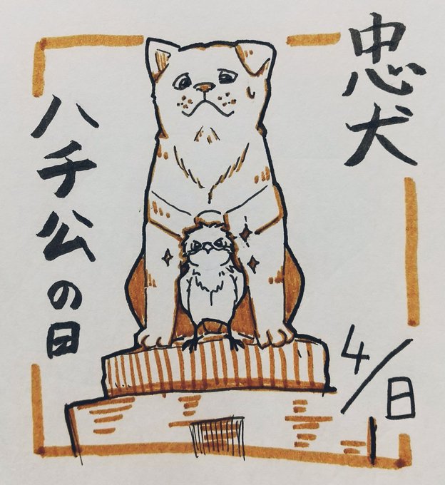 今日は #忠犬ハチ公の日 🐶 憧れのハチ公になりきって嬉しそうです✨ #絵柄が好みっていう人にフォローされたい #春の創作クラスタフォロー祭り #ゆるいイラスト #トイプードルの女の子 #こめこ