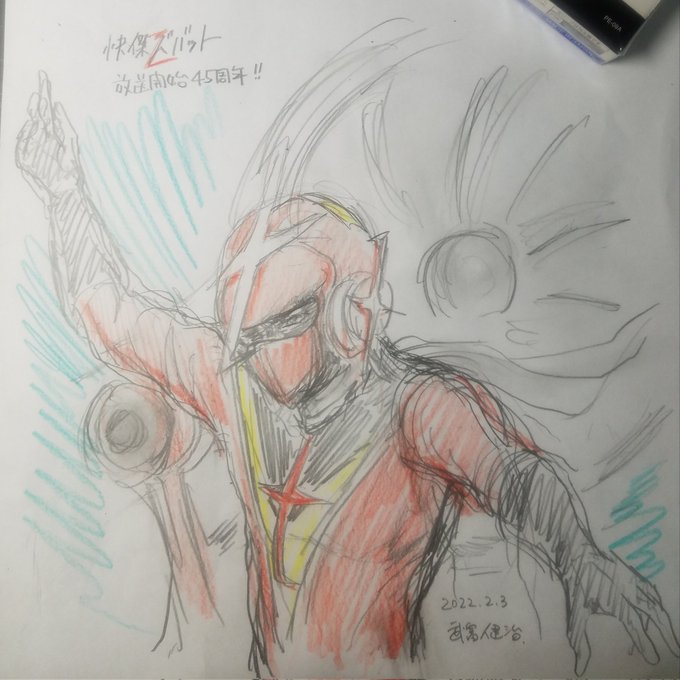 あっという間の楽しいイラストでした!(また、2021年の古い図面もあります) A fun and quick illustration. (+ a Repost.) #2月2日 #ズバットの日 #快傑ズバット46周年 #快傑ズバット #早川健 #特撮 #特撮ヒーロー #特撮絵描きさんと繋がりたい #イラスト #DigitalArt #ArtistOnTwitter #Tokusatsu