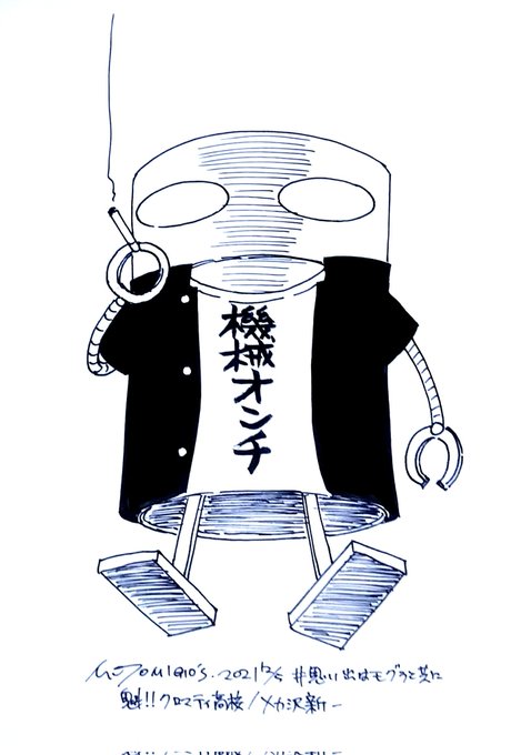 90年代マガジンらくがき③ 魁!! クロマティ高校/メカ沢新一 メカ沢~!! クロ高の良心・漢の中の漢。名言しか言わない。 メカ沢好きすぎてストラップ(時代…!)未使用のままとってあるよ!! #思い出はモグラと共に