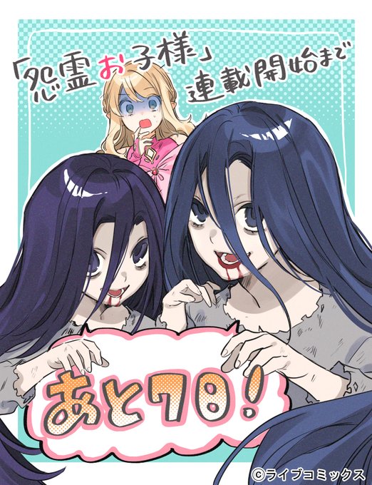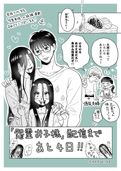 若狭たけし先生の『怨霊お子様』連載開始に合わせてコラボアートを描かせていただきました! 忌美ちゃんも加わり、これからの二ノ瀬家の暮らしが楽しみです! ✨いよいよ明日✨ #怨霊お子様 #怨霊奥様ゾクッ編カウントダウン #アンブル編集部