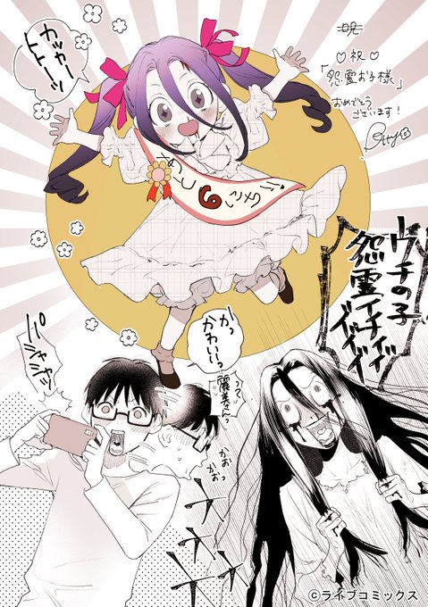 若狭たけし先生の『#怨霊お子様』連載開始に合わせてコラボアートを描かせていただきました!✨ 「怨霊で癒やし系コメディ」というのが本当に面白い漫画だなと思っております。応援してますー! #怨霊奥様ゾクッ編カウントダウン #グルナ編集部