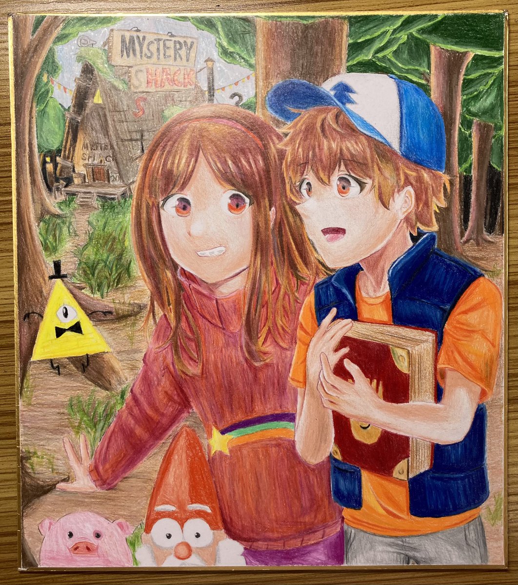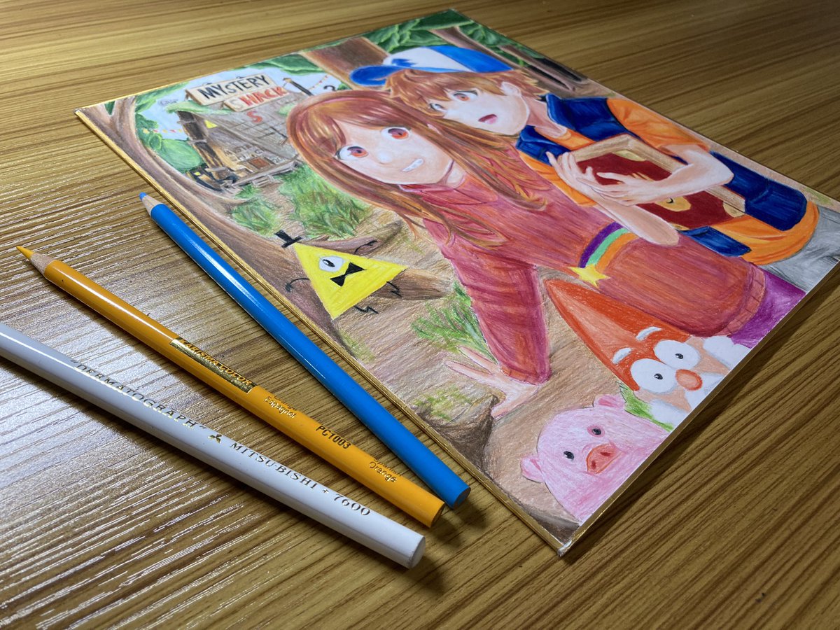 文化祭で使う色紙のイラスト! 全部で15時間ぐらい掛かった…やっぱりペンを使うべきだったかも。 #イラスト #illustration #gravityfalls #怪奇ゾーングラビティフォールズ #色鉛筆 #色鉛筆画 #中学生絵描きさんと繋がりたい #Disney
