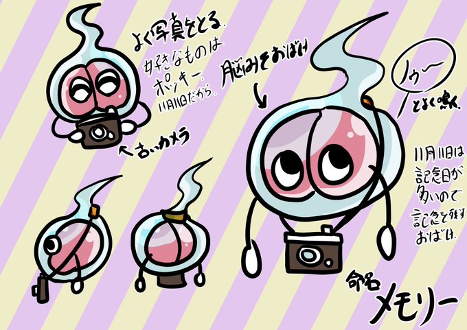 #怪奇討伐部 #イラスト #絵描きさんと繋がりたい ムジナくんへ!! 早めのHAPPY BIRTHDAY!🎊 誕生日プレゼントはマスコット 脳ミソお化けのメモリーくんです!「ノゥ」とよくおしゃべりする仲良くしてあげてね!