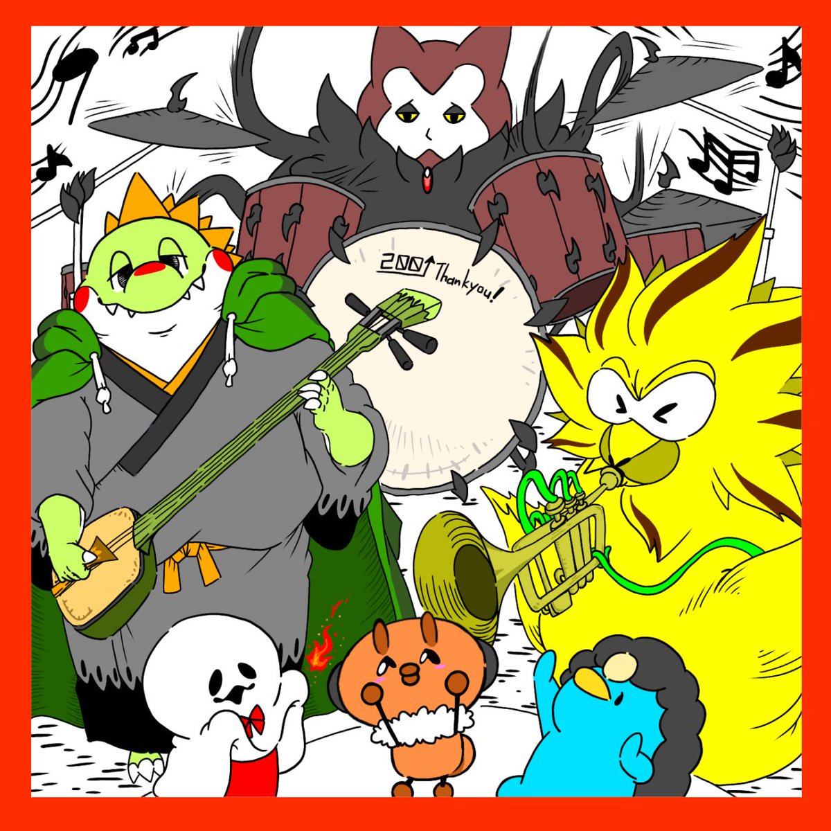 200名さま超え記念のイラストになります!!楽器は描くのが大変ですが、楽しいですね。描いても奏でても楽しいし、見ているだけでも楽しいから楽器なんでしょうね。 激烈感謝です!! ありがとうございます! #200名さま超え感謝 #イラスト好きさんと繋がりたい #怪獣ベンチ #怪獣のバラード大好き