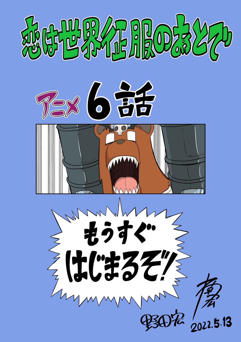 本日 恋は世界征服のあとで アニメ第6話はこのあと順次放送です! 5月13日(金)放送&配信! 📺AT-X:21:30~ 📺TOKYO MX:22:30~ 📺BS朝日:23:00~ 📺テレビ愛知:26:05~ ⚡FOD:22:30~ 独占見放題 ⚡FOD,TVer,GYAO!で1週間見逃し配信 koiseka-anime.com/onair/ #恋せか