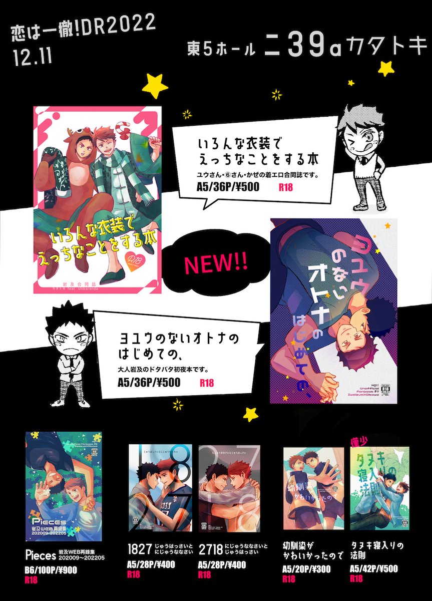 12/11恋は一徹!DR2022発行、かぜさん(@hqkazehiki)と⑥さん(@jacaranda_6)との合同誌サンプルです! お二方のサンプルはpixivでご覧ください☺️ pixiv.net/artworks/10334… #恋は一徹DR2022