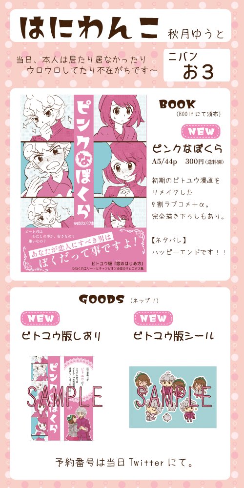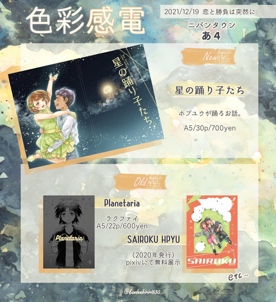 2021.12.19(日)webイベント #恋バト にチェレベルで参加します!スペース「サンバンタウン:い1」です。 新刊と既刊通販、作品展示を行います〜💙💛 ▼新刊サンプルなどの詳しい内容はサイトをご覧下さい▼ biheieyasu.milkshake.jp/2021/12/off211…