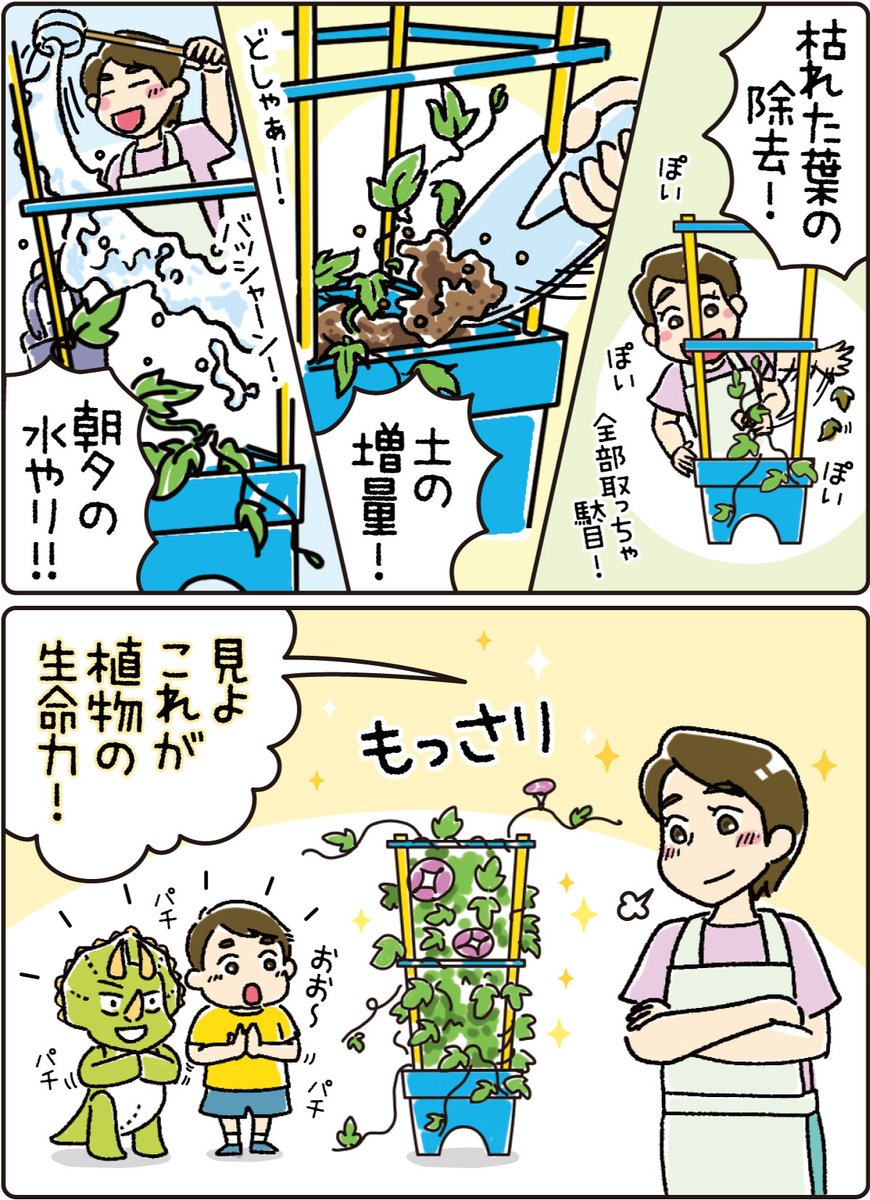 Twitter漫画更新しました📣✨ 小学校の時、持って帰ったなぁ~~🌼 私の朝顔の花は1輪しか咲かず…(´・ω・`) あの時、ママさんいてくれたら良かったなぁ✨ #トリトリと #恐竜 #恐竜好き #漫画が読めるハッシュタグ #子育て #あるある ⏩これまでの話を読む 🦕💨 yomiuri-osaka.com/lp/toritorito-…