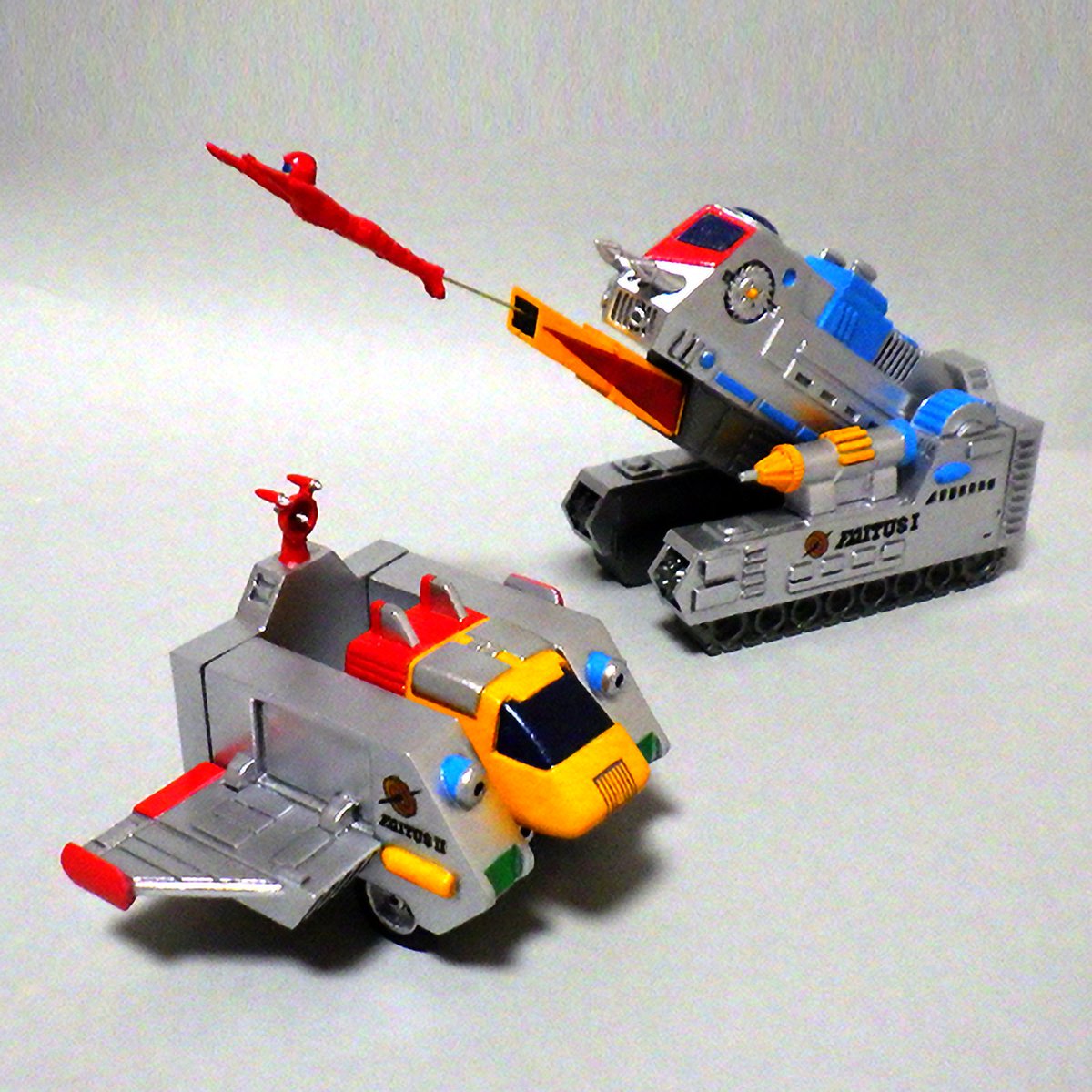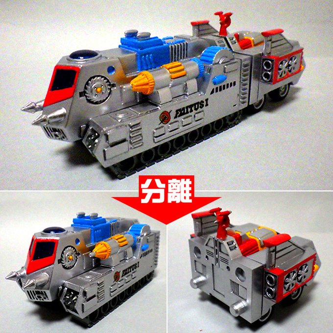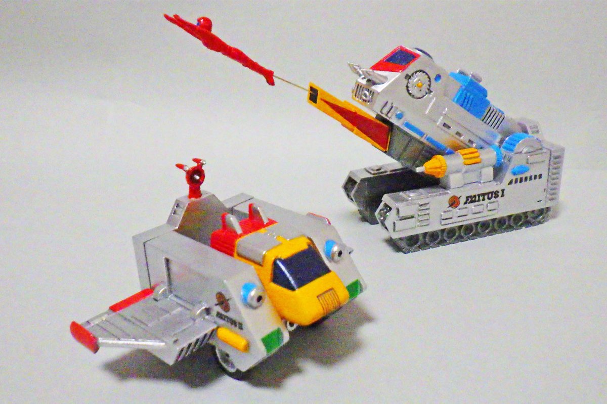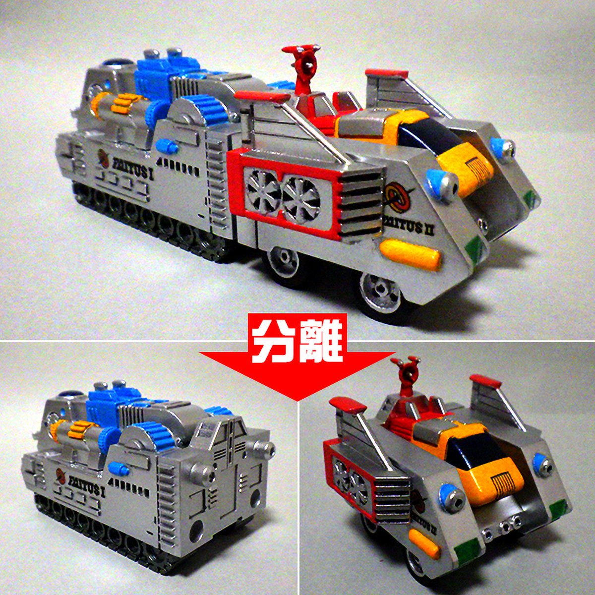 商品名:ファイタスⅠ、Ⅱ号 価格:8000円 販売数:10 恐竜戦隊コセイドンの戦闘車両、ファイタス号です。 Ⅰ号とⅡ号に分離し、Ⅱ号は飛行機形態になります。 タイム戦士コセイダーを射出する人間大砲ファイタスボンバーを展開可能です。 #WF2023S #恐竜戦隊コセイドン