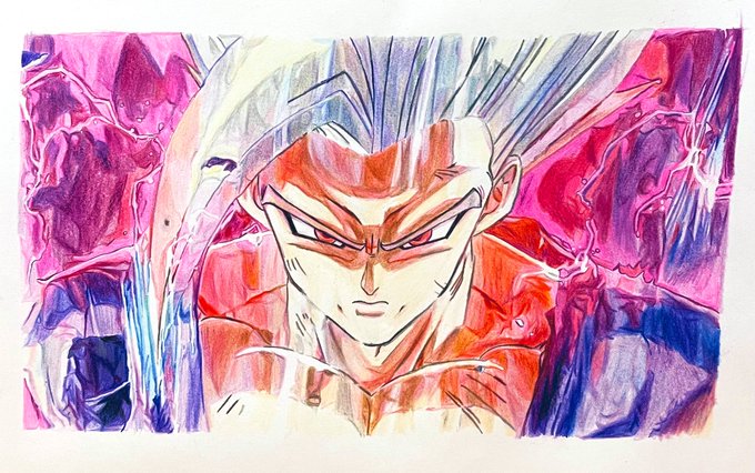 おはようございます🌤 一発画、初着色です🖍 今日もよろしくお願いします(*ᴗ͈ˬᴗ͈)⁾⁾⁾ 今度は僕の番だ! #ドラゴンボール #悟飯ビースト #模写 #ペン画 #アトリエの系譜 #みんなで楽しむTwitter展覧会 #イラスト好きさんと繋がりたい #絵描きさんと繋がりたい #いいねした人全員フォロー