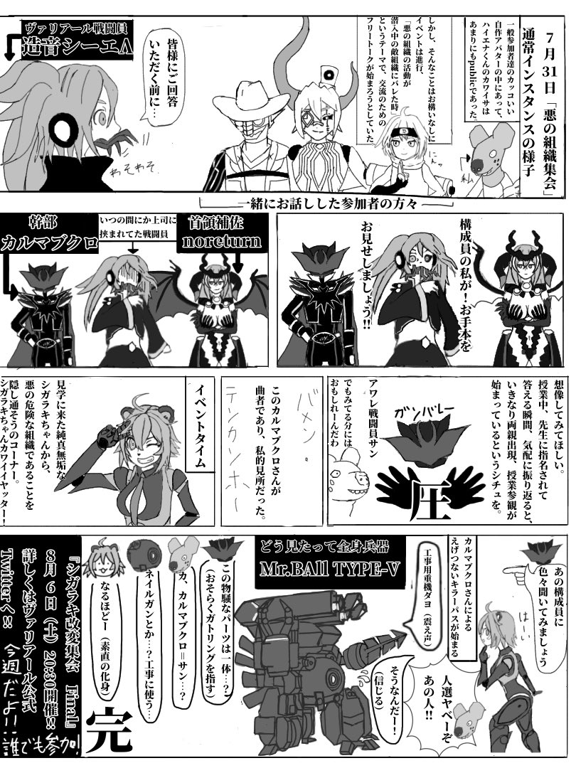 #悪役結社ヴァリアール のイベント #VRC悪の組織集会 で「悪」になってきました。 記憶を頼りに描いたので、いい加減なとこは見逃してねネ。 シガラキちゃんは可愛い。これだけはハッキリと真実を伝えたかった。 みんなもシガラキ改変集会Fainalに行こうね!今週土曜8時! #VRC漫画 #ヴァリアート