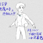 進撃の巨人The Final Seasonの新ED「悪魔の子」に感動し 描いている少年エレンの下描完成。 次は着色になります。 悪魔の子を聴きながら描いたら、感情が昂って涙出てきた。 #イラスト #イラスト好きな人と繋がりたい #進撃の巨人 #エレン #AttackOnTitan #ErenJaeger #悪魔の子