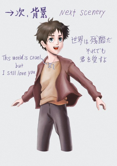 少年エレンの着色、次は背景に入ります。 「悪魔の子」で好きな歌詞部分は、 「 僕らはなんて 矛盾ばっかなんだ 」という部分。 #イラスト #イラスト好きな人と繋がりたい #進撃の巨人 #エレン #進撃の巨人finalseason #AttackOnTitan #AttackonTitanFinalSeason #ErenJaeger #悪魔の子 #EREN