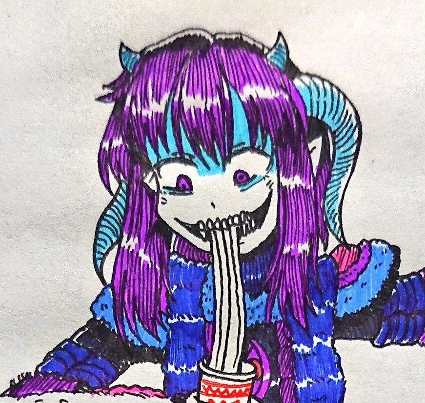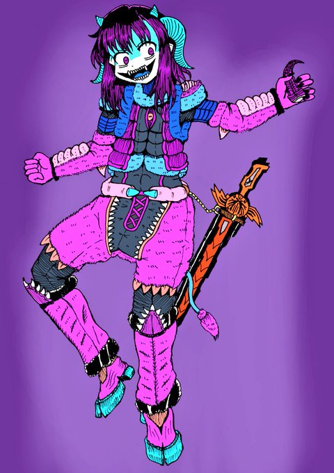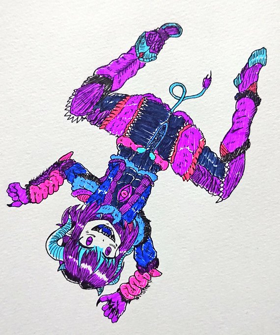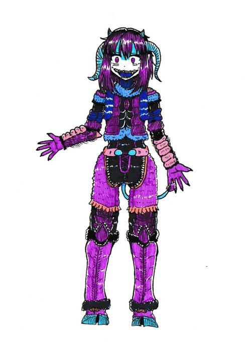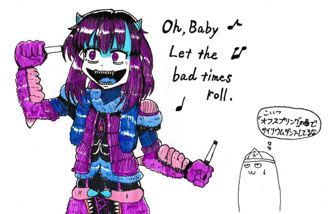 サイリウムダンスしてる悪魔メルゴー (曲はオフスプリングの『let the bad times roll』) #イラスト #オリジナル #悪魔メルゴーのヤヴァい日常 #ナガシラのヴィランアート