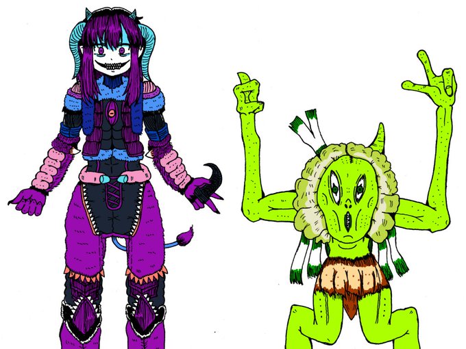 M-1グランプリ『シシカバブタキム』 2人『はいどうもー、シシカバブタキムでーすって言うてますけどもねー。』 秒でスベるオチでしかない… #うちの子 #イラスト #オリジナル #ナガシラのヴィランアート #悪魔メルゴーのヤヴァい日常