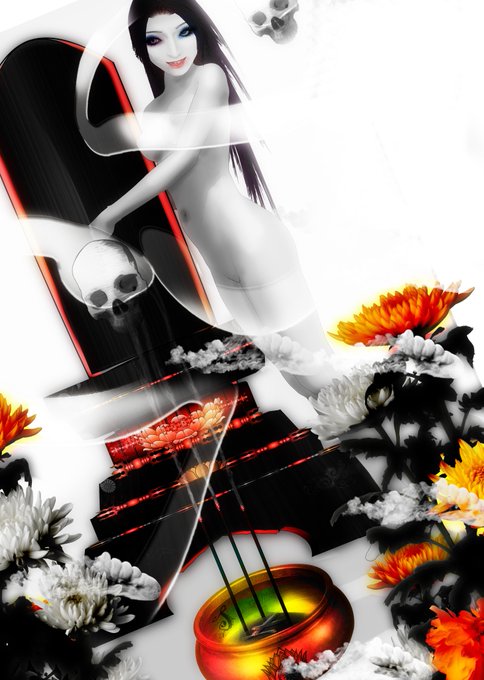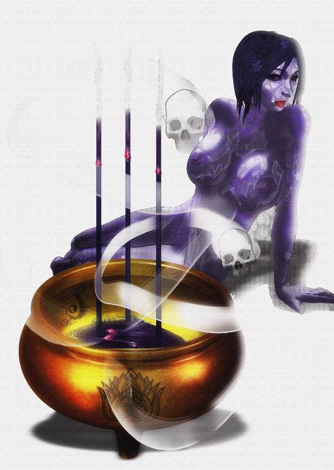 香炉と女性 線香の立ち上る煙は、あの世とこの世をつなぐ橋渡しだそうです。 #アトリエの系譜 #イラスト #イラスト好きな人と繋がりたい #悪魔絵師 #夏の創作クラスタフォロー祭り #美人画 #artlovers #contemporaryart #artsy #artwork