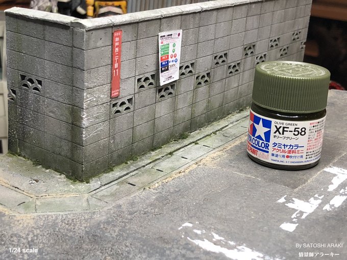 【日常】 ドブ板沿いの「モフモフ」苔を一枚一枚貼るのは本当に楽しい作業♬ ドイツ製のジオラマ素材「ミニネイチャー」のモス素材。ジオラマ専門店:さかつうギャラリーで通販できます! shopsakatsu.com/shopbrand/ct28… #ジオラマ #情景師アラーキー #さかつうギャラリー