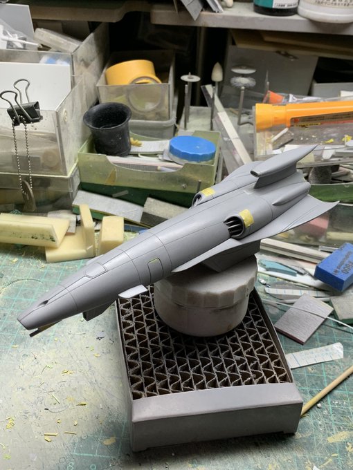 『惑星大戦争』1/100(17㎝)轟天号艦載機・スペースファイター 個人的に作っている原型の進捗状況の記録 主に大サイズのプロップを参考資料にしたポリパテによる造形の途中です。 #惑星大戦争 #スペースファイター